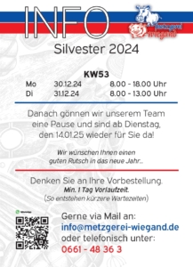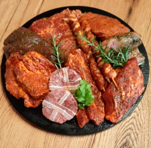 Mit dem Frühling hat auch die Grillsaison wieder begonnen. Wir halten für Sie bereit: Schweinesteak vom Kamm oder mager aus der Lachsrolle, Hähnchenbrust oder Putenschnitzel. Alles ist mit unterschiedlichen Marinaden gewürzt oder auch natur erhältlich. Spieße von Schwein oder Hähnchen, Fetaröllchen mit rohem Schinken, Grillfackeln, Leiterchen, Hacksteaks, Burgerpattys….