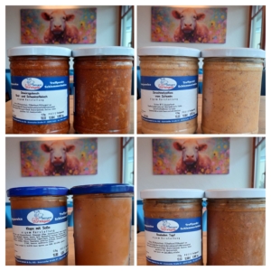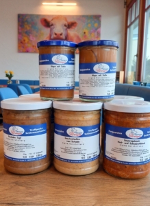 Neben unserer klassischen groben, hausmacher Bratwurst gibt es auch feine, gebrühte mit Bärlauch, oder Käse-Spinat. Auch eine reine Rinderbratwurst erhalten Sie bei uns.