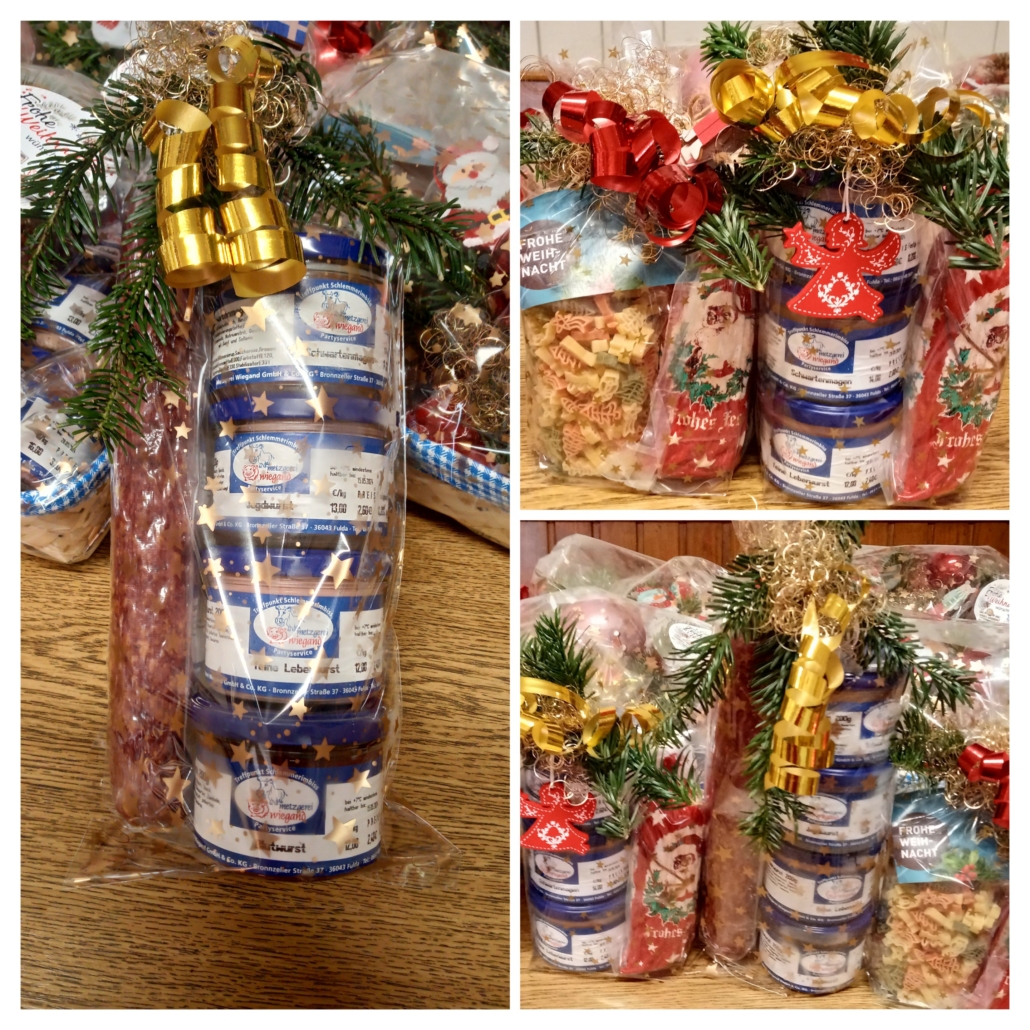 Oder ein Wurstkorb, weihnachtlich verpackt. Direkt zum verschenken.