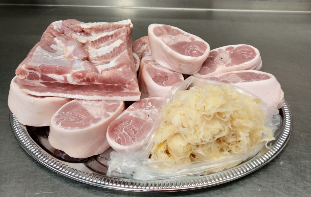 Für die letzten kalten Wintertage halten wir noch gepökeltes, wie Eisbein oder Schweinebauch für Sie bereit.