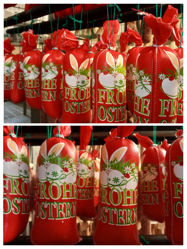 Unsere hausmacher Salami im „Ostergewand“. Nur so lange der Vorrat reicht.