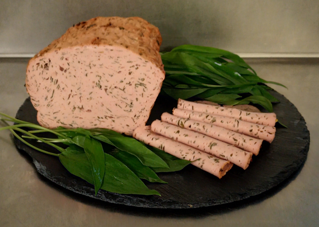 Für einige Wochen erhalten Sie bei uns wieder feinen Fleischkäse mit frischem Bärlauch.
